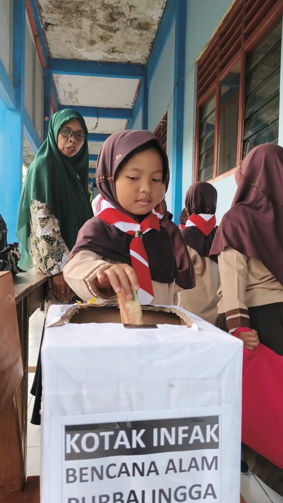 Walik — Madrasah Ibtidaiyah Muhammadiyah (MIM) Walik kembali menanamkan nilai iman dan kepedulian sosial kepada peserta didik melalui kegiatan Jumat Habit (Hari Bina Iman dan Taqwa). Pada kegiatan kali ini, siswa diajak untuk berbagi dengan menyisihkan rezeki seikhlasnya sebagai bentuk kepedulian terhadap korban banjir bandang yang melanda wilayah Serang, Purbalingga.