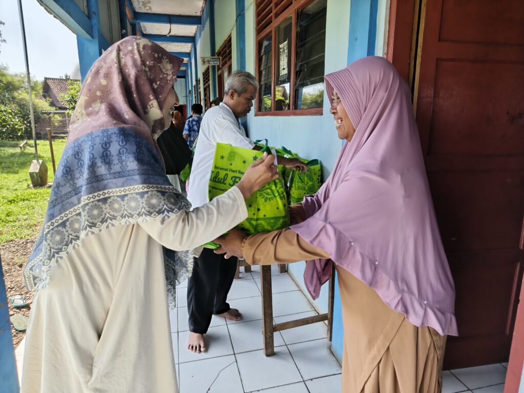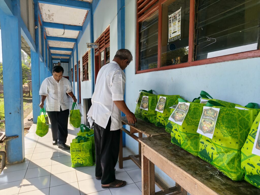 Seluruh warga sekolah MIM Walik ikut serta dalam kegiatan berbagi sembako, Jumat (13 Maret 2026)
