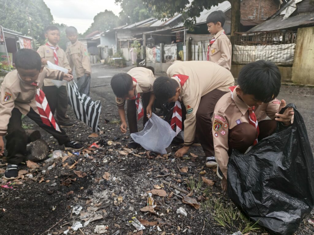 Siswa MIM Walik memungut sampah di sekitar jalan, Sabtu (14 Februari 2026)